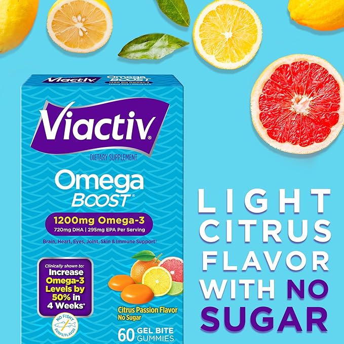 Viactiv Omega Boost Supplement, 1200 mg Omega-3s, 60 Chewable Gel Bite Gummies (Packaging May Vary)