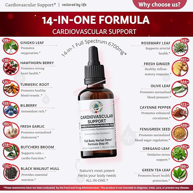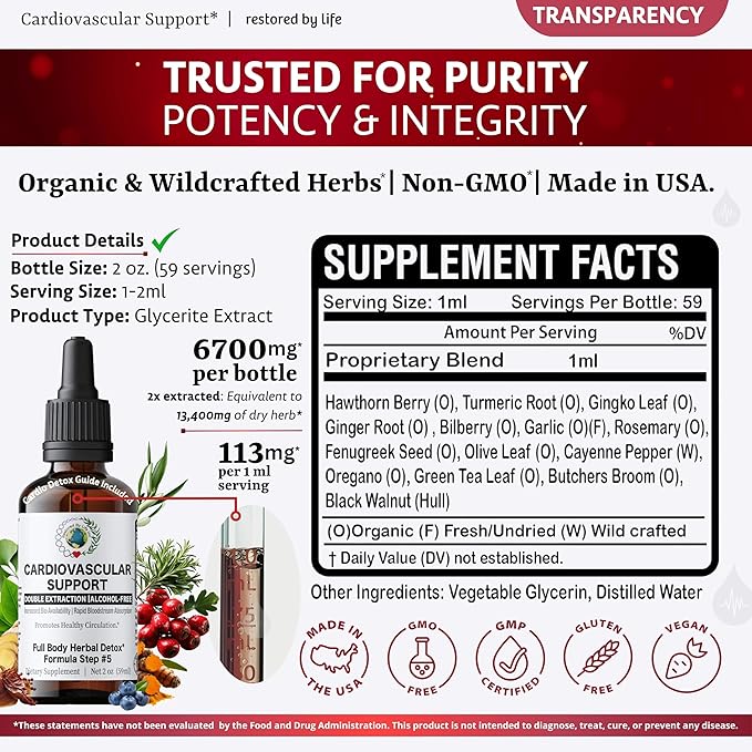 Cardiovascular Support Heart Health Supplement Vein Circulation Herbal Glycerite Alchohol Free Extract