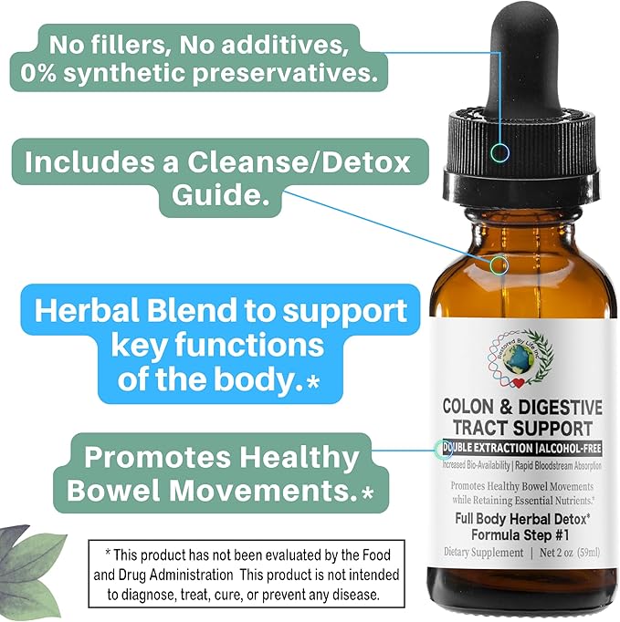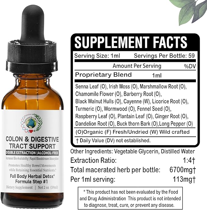 Colon Digestive Tract Support | 2 oz. Liquid Extract Tincture | Detox Cleanse Support Formula