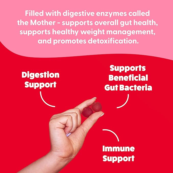 - Supports a Healthy Gut. Apple Cider Vinegar Gummies have a variety of powerful benefits that help promote a healthy gut and support healthy digestion. Contains "The Mother" which consists of naturals digestive enzymes for healthier digestion.