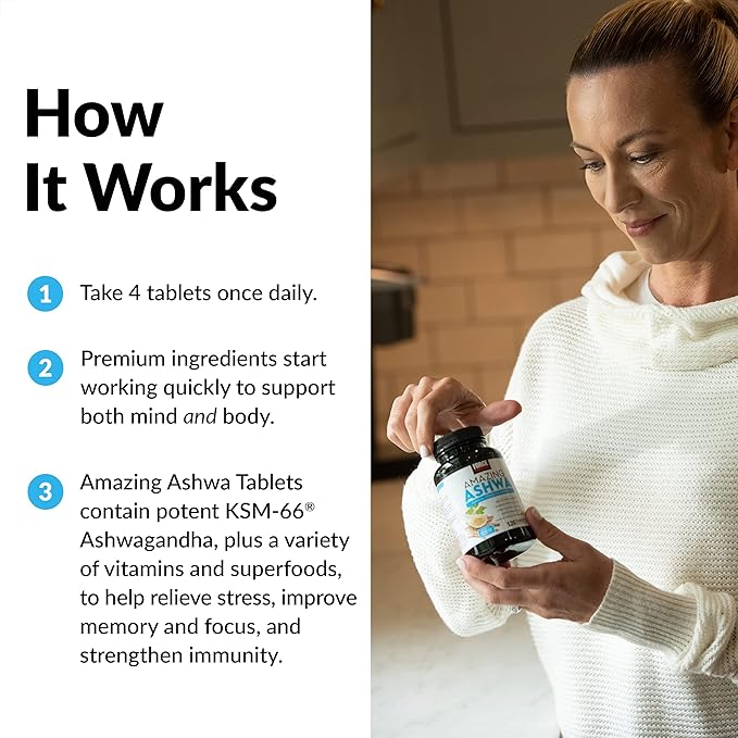 - CLINICAL STRENGTH FORMULA: Don’t settle for weak, underdosed ashwagandha capsules. Amazing Ashwa Tablets contain a clinical-strength dose of KSM-66 ashwagandha to help you relieve stress, think more clearly, and live life with more energy.