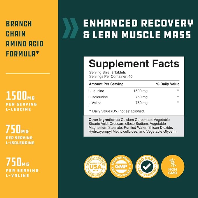 - Just the Essentials - Our BCAA pills contain the ideal ratio of 3000mg leucine isoleucine valine essential amino acids making it a go to choice for your next BCAA pre workout no caffeine formula