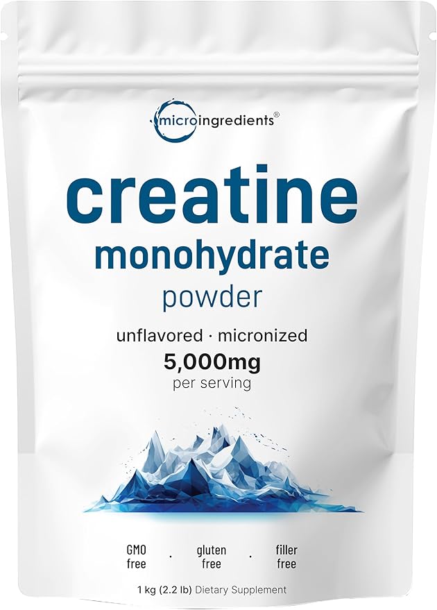 - Micro Ingredients pure micronized creatine monohydrate powder. A natural workout supplement for men and women that is unflavored and designed to easily dissolve into any beverage or pre workout & post workout powder drinks. Each bag contains over a 6 months supply and offers 5g of pure creatine per scoop.