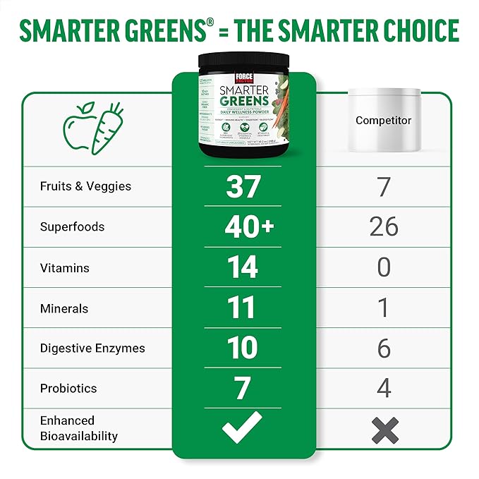 Force Factor Smarter Greens Daily Wellness Powder, Greens Superfood Powder to Support Gut Health, Bloating, & Digestion, with 40+ Superfoods, 125 Million CFUs of Probiotics, Unflavored, 30 Servings