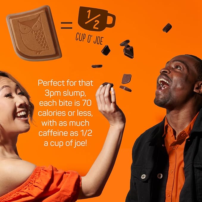 - Natural Energy Boost - With 50mg of caffeine and only 60 calories, our bites help you tackle your day or beat the afternoon slump. Just one delicious bite equals half a cup of coffee with no artificial colors or flavors (or the mess or taste of coffee!).