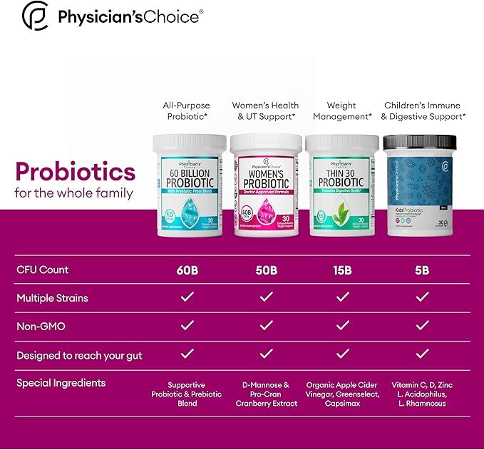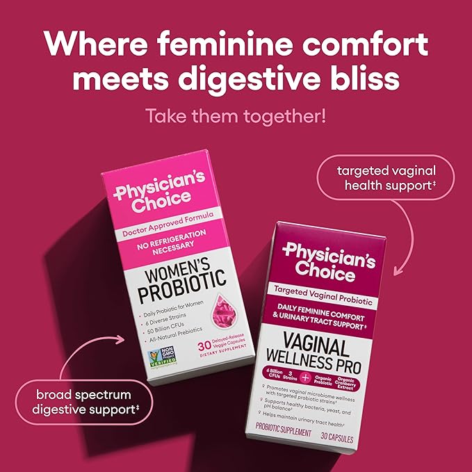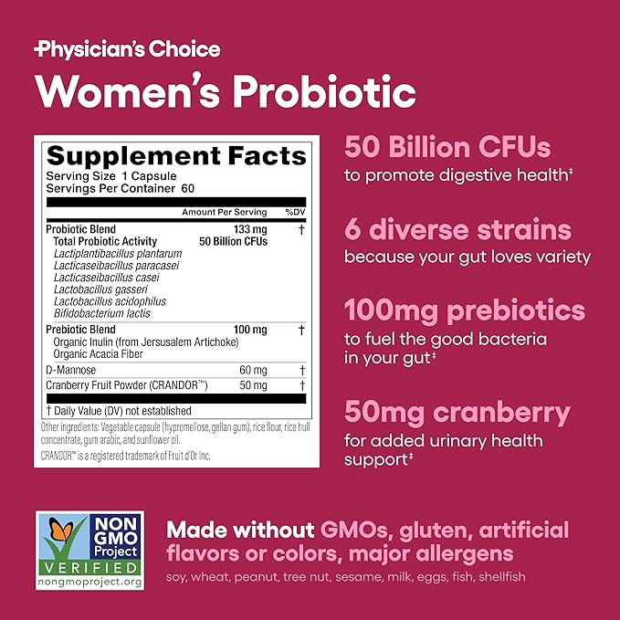 Physician's Choice Probiotics - PH Balance, Digestive, UT, & Feminine Health - 50 Billion CFU - 6 Unique Strains for Women - Organic Prebiotics, Cranberry Extract+ - Probiotic - 60 CT