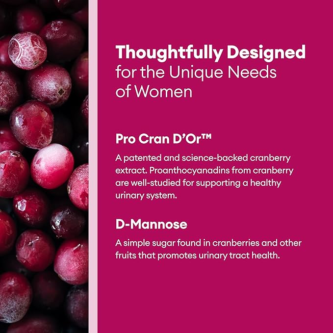 - Once Daily Probiotics for Women: Our probiotic is designed specifically for feminine health & overall digestive health. 6 diverse strains (50B CFU), D-Mannose, Pro-Cran, & organic prebiotics provide you with the feminine support you deserve.