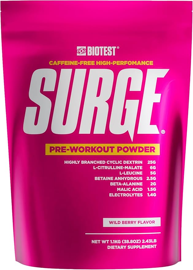 Biotest Surge Intra Performance Booster - Beta-Alanine, L-Leucine, Citrulline Malate, Betaine, Cluster Dextrin (HBCD), Electrolytes (20 Servings, Berry) 2.43lb