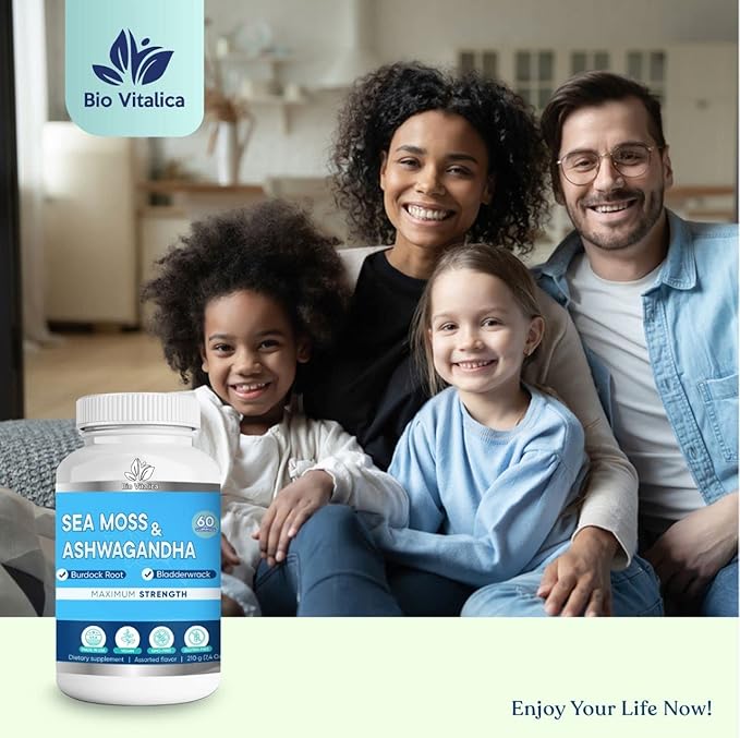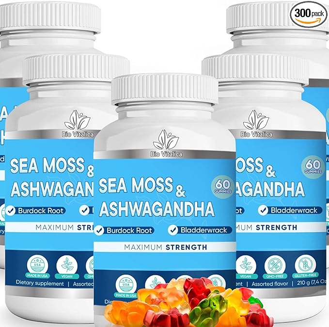 - Energy and Immunity. With BioVitalica's Sea Moss Ashwagandha Gummies, you'll get a powerful blend of organic wildcrafted Irish Seamoss and Ashwa Root Powder, Ashwagandha.