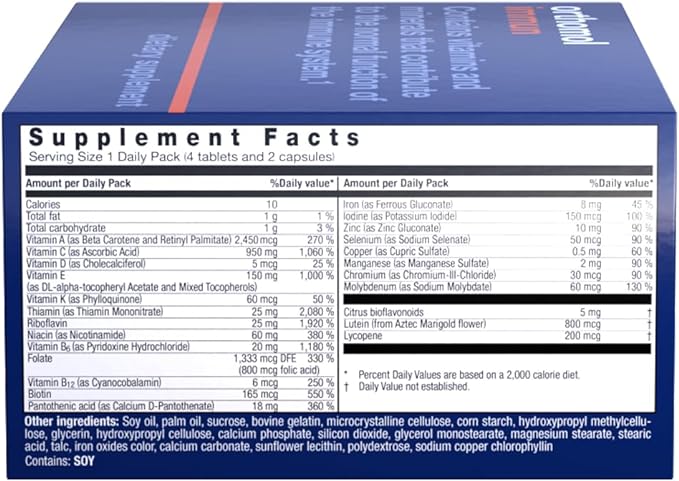 - 30 day supply. Everything you need in a convenient daily pack. Take the contents of 1 Daily Pack with or after a meal once every day.