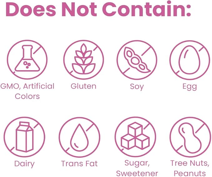 - THIS SUPPLEMENT DOES NOT CONTAIN: GMO, Artificial Colors, Gluten, Soy, Egg, Dairy, Trans Fat, Sugar, Sweeteners, Tree Nuts, and Peanuts.