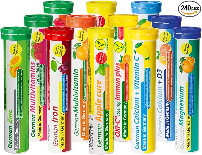 - Cover your vitamin and mineral needs with the various German Drink Effervescent Tablets