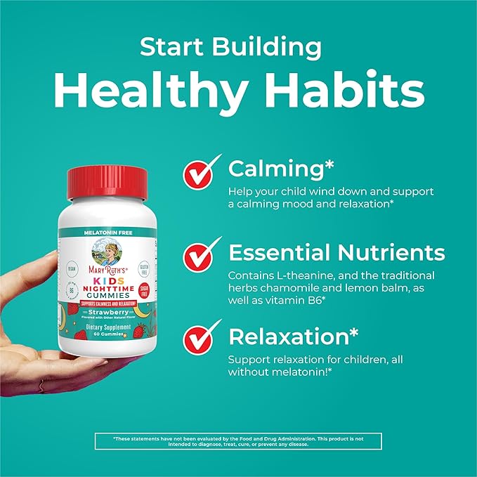 MaryRuth's Kids Nighttime Gummies | Sugar Free | NO Melatonin Gummies with L Theanine, Lemon Balm, Chamomile, Vitamin B6 | Relaxation Support for Kids 2+ | Vegan | Non-GMO | Gluten Free | 60 Count