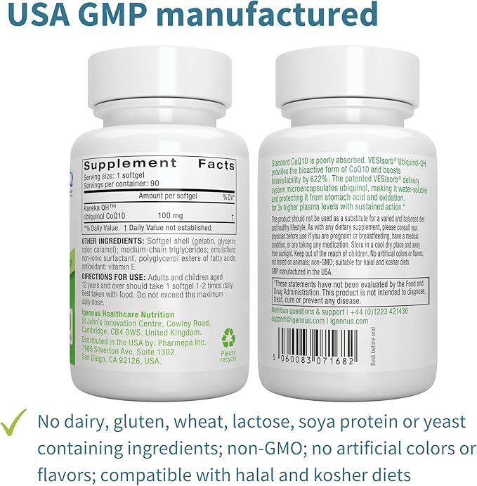 Advanced VESIsorb Ubiquinol-QH, Superior CoQ10 100mg, Kaneka QH, 90 Softgels, Fast-Acting & High Absorption, for Heart Health, Energy, Fertility, 3-Month Supply, by Igennus