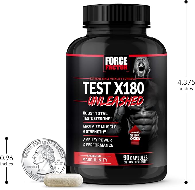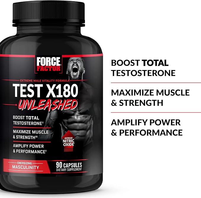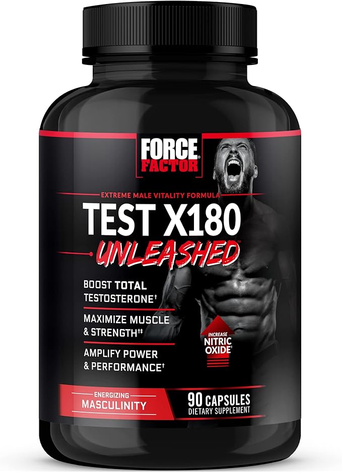 FORCE FACTOR Test X180 Unleashed Testosterone Booster for Men to Build Muscle, Increase Strength, and Improve Performance, Testosterone Supplement for Men’s Health, 90 Capsules