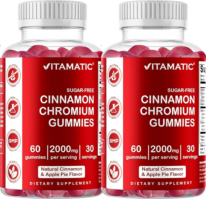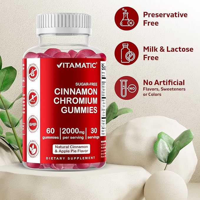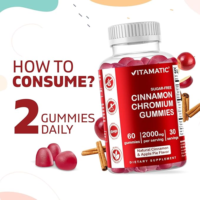 - DELICIOUS CINNAMON & APPLE PIE TASTE of Vitamatic Cinnamon Chromium Gummies - Avoid Consuming Large Chromium or Cinnamon Capsules, Tablets or Pills which gives unpleasant after taste & can not go down easily