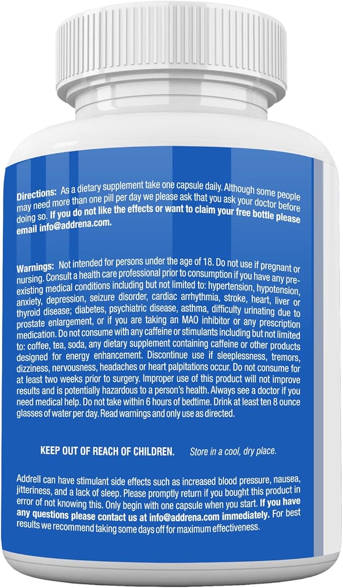 - Addrell enhances mental energy to keep you awake with the focus you need to boost productivity. It is made in a fantastic over the counter GMP certified facility with the strongest OTC ingredients to boost the connectivity of our neurons and help release stimulating chemicals into our brain. Add these pills to your daily routine to get the edge you are looking for!