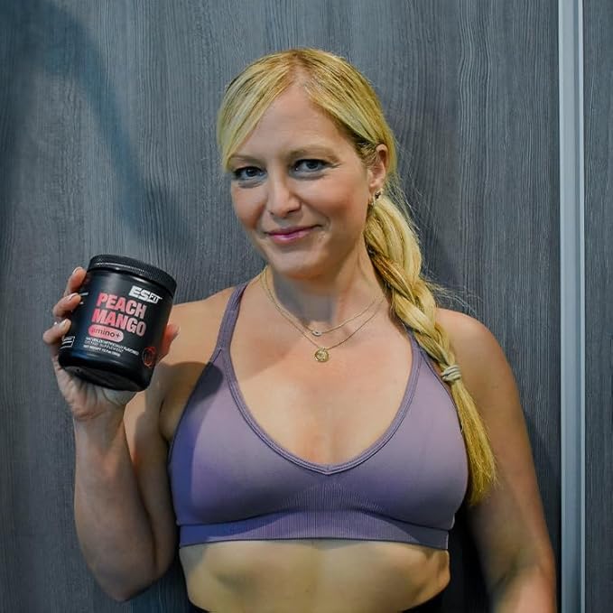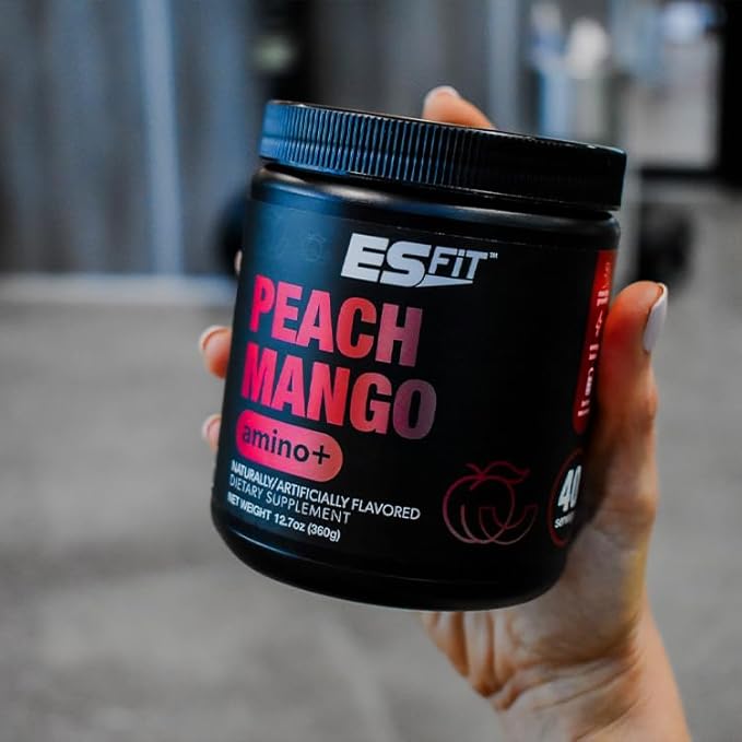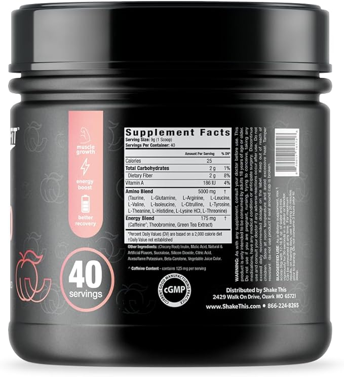 Amino+ Powder - Pre and Post Workout with Caffeine + Green Tea Extract - BCAA, Amino Acids, Zero Sugar, Low Calorie, Superior Taste, 40 Servings (Peach Mango)
