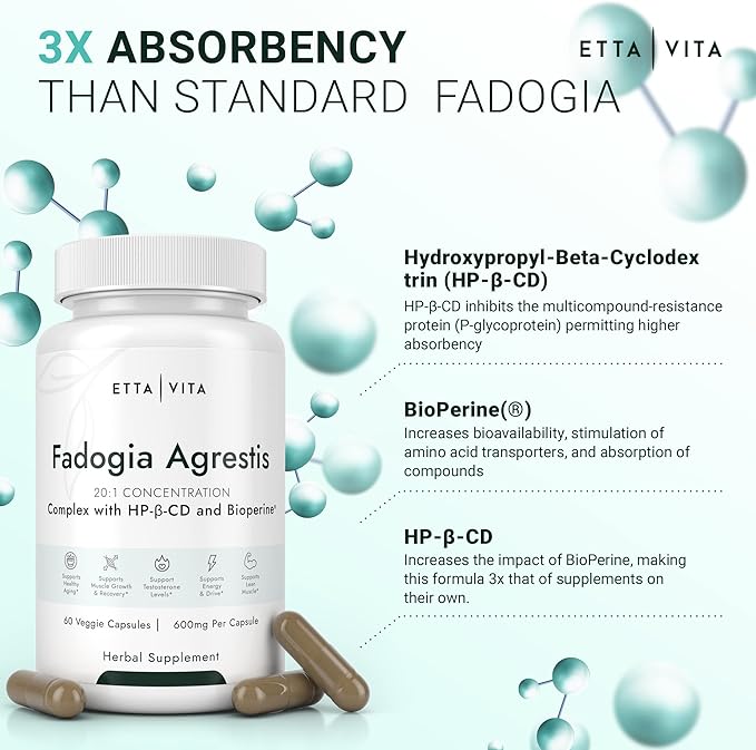 - [2x More Pure Than Standard Formula - 20:1 Extract]: Etta Vita has refined the extraction process of the raw material, making it twice as potent as common fadogia agrestis capsules with the same intake. Meaning, the active ingredient is twice as potent per capsule.