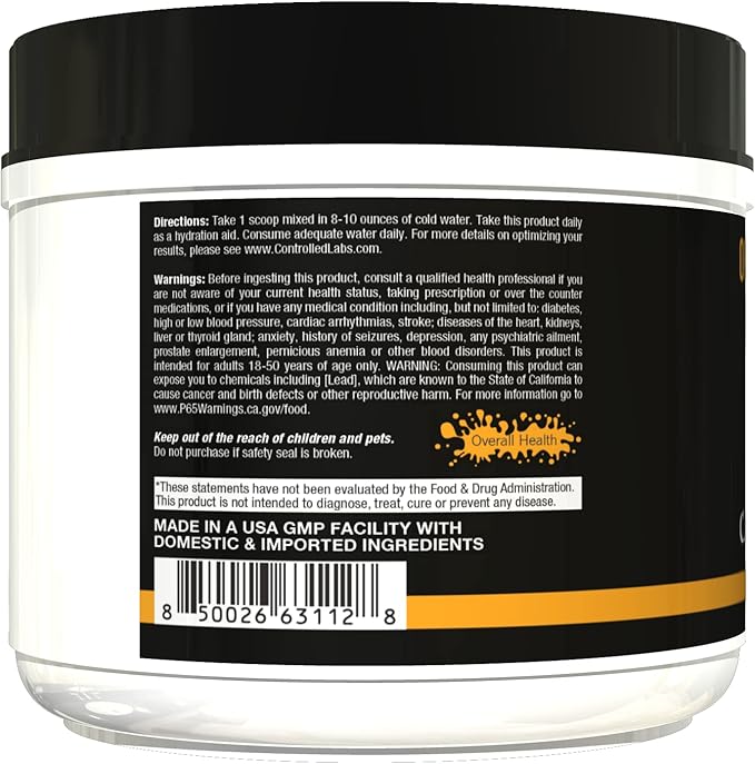CONTROLLED LABS Orange HydraPush Electrolyte Powder, 60 Servings - Advanced Hydrating Recovery - Coconut Water & Taurine - Boost Energy & Increase Endurance (Sour Green Apple)