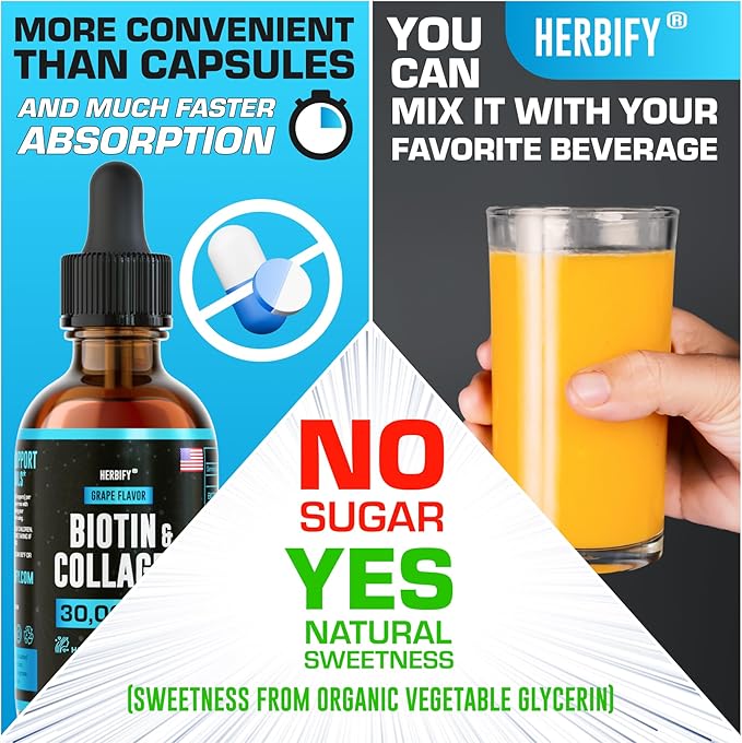 - Hair Growth Supplement - Biotin and Collagen liquid is able to provide significant support for hair growth for women and men. You may forget about hair problems thanks to the special features of biotin and collagen supplements.