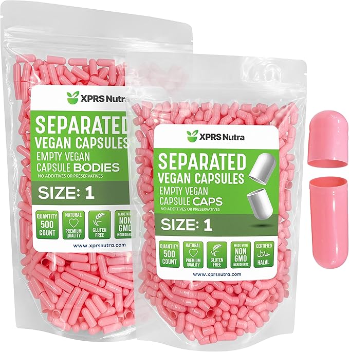 XPRS Nutra Vegan Size 1 Separated Capsules - 1000 Count Premium Empty Capsules Separated in Bags - Empty Capsules - Separated Empty Capsules - Pill Capsules Empty for DIY Supplement Filling (Pink)