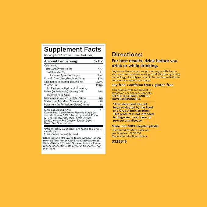 Morning Recovery Electrolyte, Milk Thistle Drink Proprietary Formulation to Hydrate While Drinking for Morning Recovery, Highly Soluble Liquid DHM, Orange Mango, Pack of 6