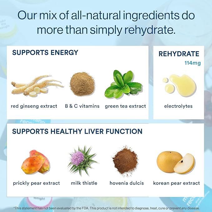 - Morning Recovery Electrolyte, Milk Thistle Drink Proprietary Formulation: Designed with patent-pending technology to help you rehydrate, restore key nutrients & feel better after one or more drinks