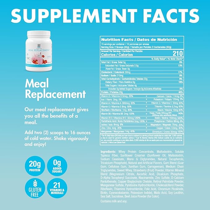 - CONVENIENCE: We're in the business of helping people achieve optimum wellness, which is why we put together a kit that is easy to use, complete with a downloadable nutritional guide. To enjoy our powder meal replacement and drink mix, add water and shake vigorously using the included shaker bottle. Our supplements are in easy-to-take capsule form.