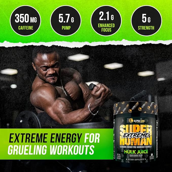 - HOW IT COMPARES: Superhuman Extreme is a high-intensity, amplified stimulant version of the original, high-performance pre workout powder from Alpha Lion. This supplement takes the original Superhuman Preworkout and ramps it up a notch, so you can take your workouts to the next level.