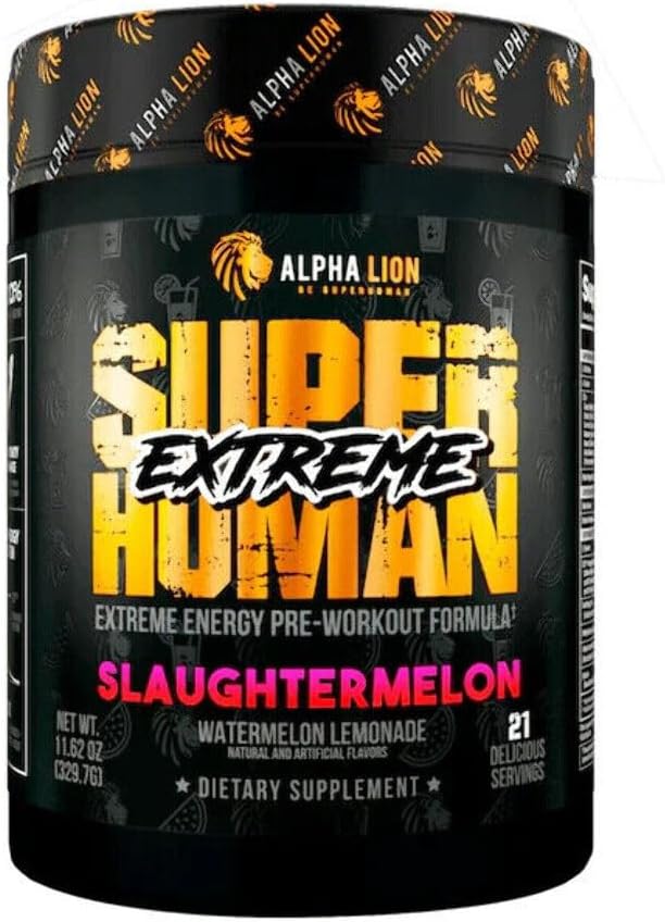 ALPHA LION Superhuman Extreme, Extreme Energy Pre-Workout Formula, Intense, Sustained Energy and Focus, Elevated Nitric Oxide, Maximum Pumps & Nutrient Delivery (21 Servings, Slaughtermelon)