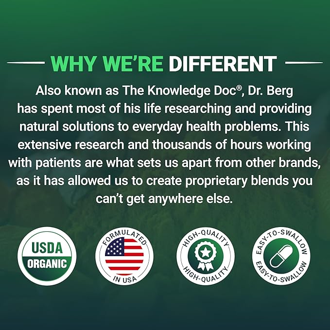 - ๐ช๐๐ฌ ๐ช๐โ๐ฅ๐ ๐๐๐๐๐๐ฅ๐๐ก๐ง - Also known as The Knowledge Doc, Dr. Berg has spent most of his life researching and providing natural solutions to everyday health problems. This extensive research and thousands of hours working with patients are what sets us apart from other brands, as it has allowed us to create proprietary blends you canโt get anywhere else.