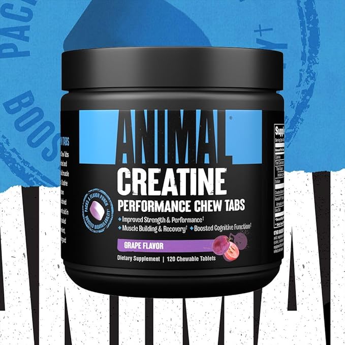 Animal Creatine Chews Tablets - Enhanced Creatine Monohydrate with AstraGin to Improve Absorption, Sea Salt for Added Pumps, Delicious and Convenient Chewable Tablets - Grape
