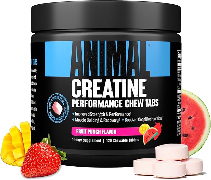 Animal Creatine Chews Tablets - Enhanced Creatine Monohydrate with AstraGin to Improve Absorption, Sea Salt for Added Pumps, Delicious and Convenient Chewable Tablets - Fruit Punch