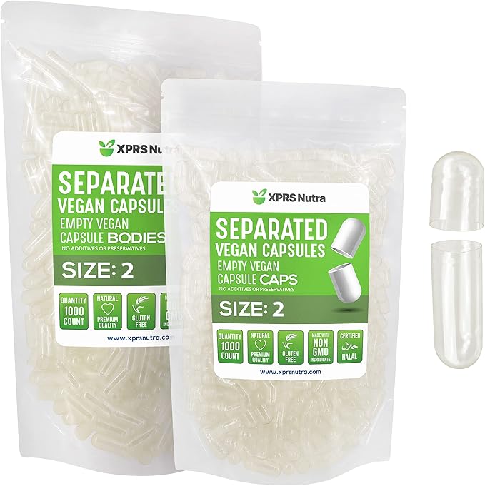XPRS Nutra Vegan Size 2 Separated Capsules - 1000 Count Premium Empty Capsules Separated in Bags - Clear Empty Capsules - Separated Empty Capsules - Pill Capsules Empty for DIY Supplement Filling