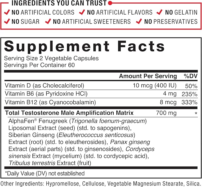 - Special Ingredients : Tribulus Terrestris, Panax Ginseng, Fenugreek