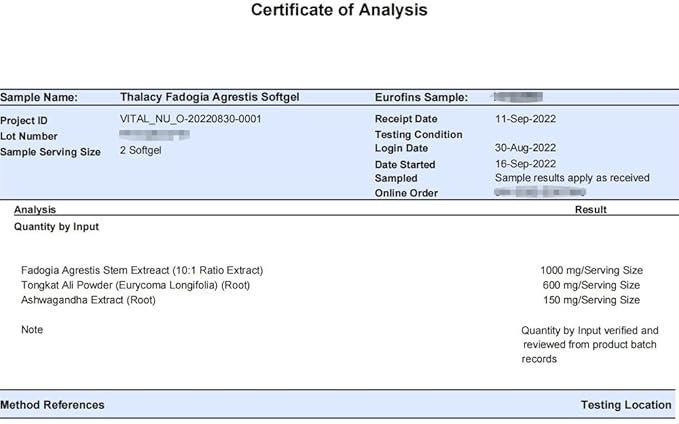 - Do not settle for Fadogia Agrestis extract supplements that only contain 300 mg, 500 mg, or 600 mg per serving, or the products blend with lower Tongkat Ali extract at only 50 mg~400 mg at a higher expense. Thalacy formula is a superior Fadogia Agrestis supplement option for you