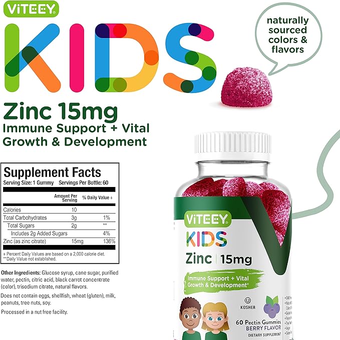 - IMMUNE HEALTH BOOSTER - Our Zinc kids gummies deliver the perfect combination that can help to aid in boosting your immune system, overall health, and well-being. Viteey's zinc gummies for kids ingredients are perfectly formulated and combined for kids and teens. Easy & convenient to take at home or on the go.