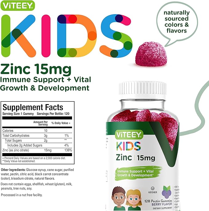 - IMMUNE HEALTH BOOSTER - Our Zinc kids gummies deliver the perfect combination that can help to aid in boosting your immune system, overall health, and well-being. Viteey's zinc gummies for kids ingredients are perfectly formulated and combined for kids and teens. Easy & convenient to take at home or on the go.