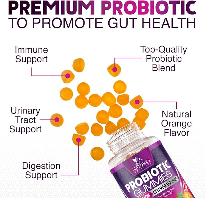 - HIGH QUALITY NUTRITIONAL SUPPLEMENT: Nature's Nutrition ensures premium quality in our probiotic gummies; Perfect as a probiotic supplement for women, men, and anyone needing a best rated probiotics digestive supplement