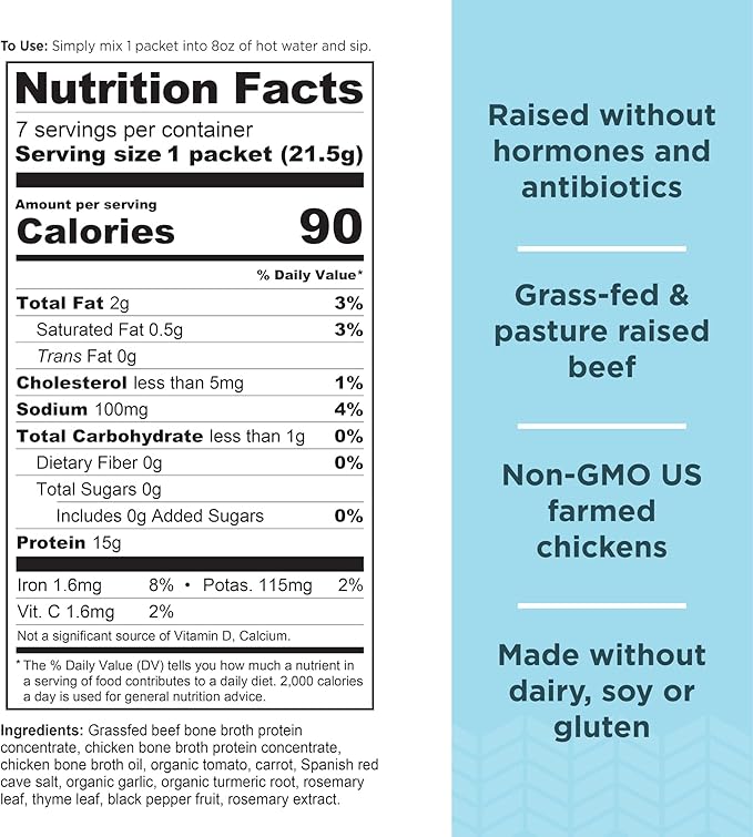 - SAVORY & EASY TO USE - Mix one scoop in 6 or 8oz of hot water & sip. Warm broth has been a staple for generations to support overall satiety, provide gut support and help you stay full – so we’ve created a line of three soup-inspired flavors designed to be added to just water, and consumed warm.