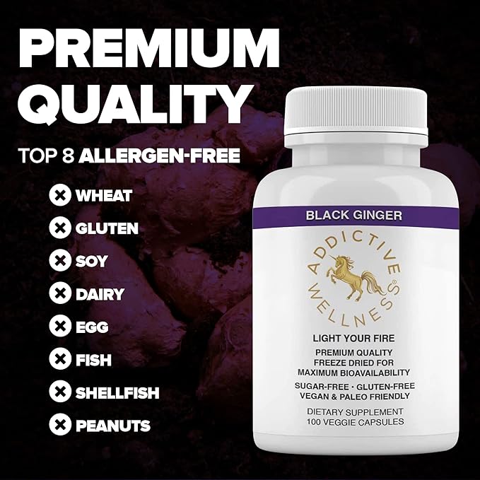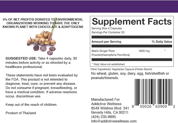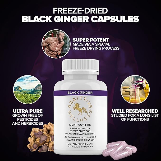 Addictive Wellness Thai Black Ginger for Men, Thai Black Ginger Supplement to Support Energy Metabolism, Endurance & Performance, Freeze Dried Black Ginger Capsules 450mg, Vegan & Paleo, 100 Count