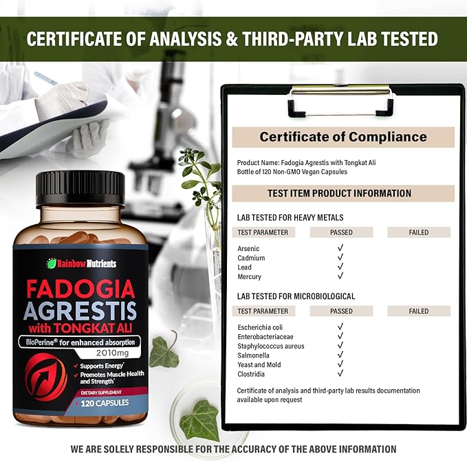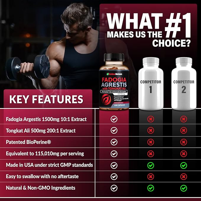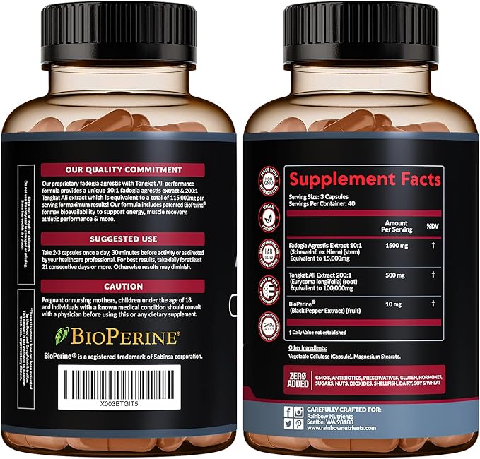 - Advanced Formulation - Fadogia Agrestis & Tongkat Ali together has been shown to promote strength & energy to help you achieve the best workout possible & especially when combined with Patented BioPerine for maximum nutrient absorption to help create the ultimate performance blend.