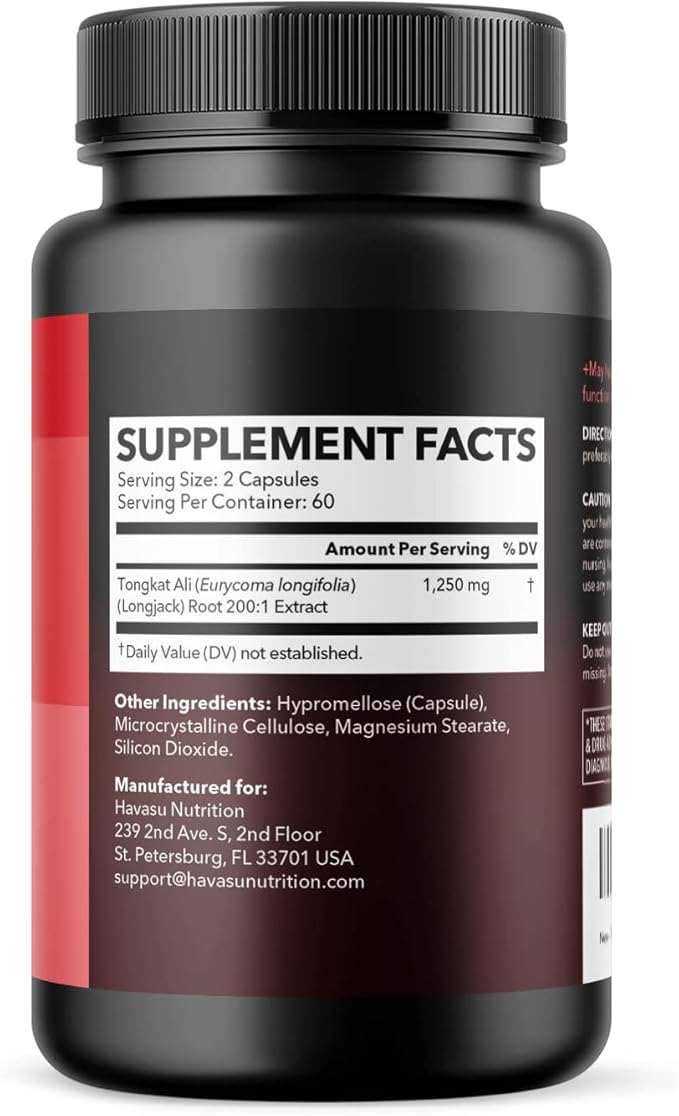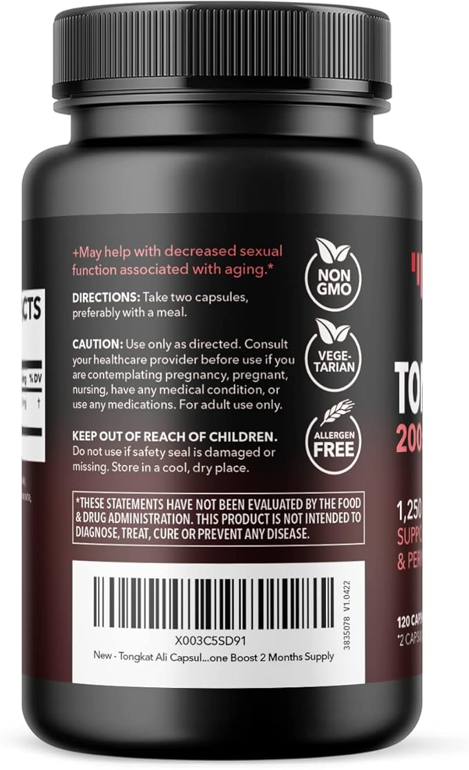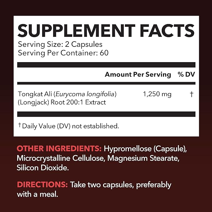 - 1,250 MG PER SERVING: Long jack tongkat ali at 200:1 is a potent supplement with over 1200 mg of tongkat ali extract. This potency helps to support performance, mood, energy production, recovery, and overall male health.