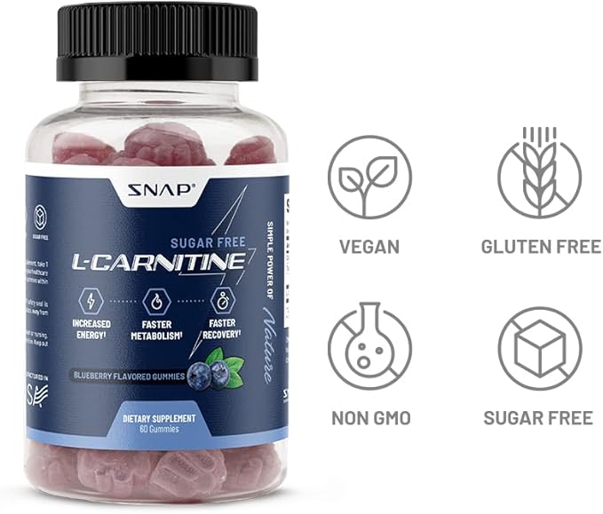 Sugar Free L Carnitine 500mg Gummy - Natural Pre Workout L-Carnitine Supplement - Increased Energy, Faster Recovery, Boost Metabolism, Pre Workout for Women & Men, Blueberry Flavor (60 Gummies)