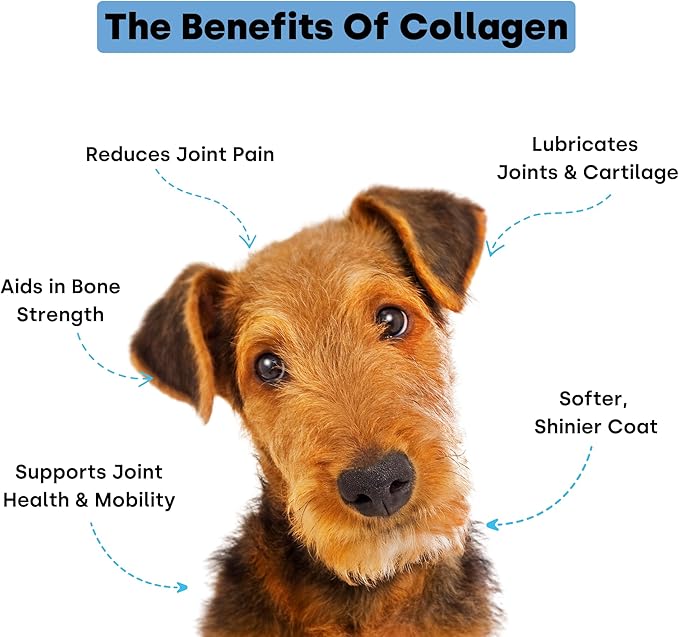 - Skin & Coat Health - The marine collagen helps keep your dog's skin moisturized, elastic, and healthy. In a few weeks you'll feel a softer, silky, and more petable coat for better cuddling time.