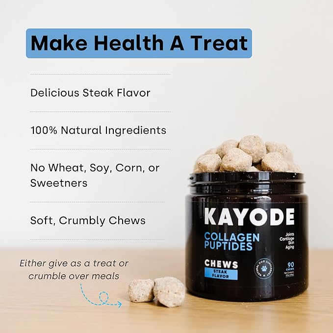 Collagen Puptides - Collagen for Dogs | Premium Dog Joint Support | Great for Senior & Adult Dogs. Premium Bovine, Marine Collagen, Omega 3s. Tasty Steak Collagen Chews for Dogs