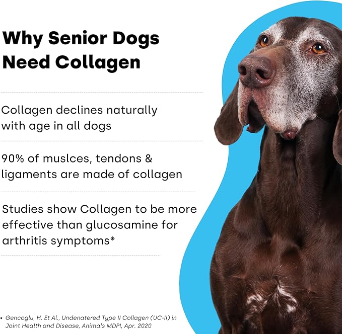 - Help Senior Dog with Aging Pain - This is a great senior dog supplement. Collagen is a crucial protein for older dogs as it helps rebuild whereas many joint supplements only help with inflammation.
