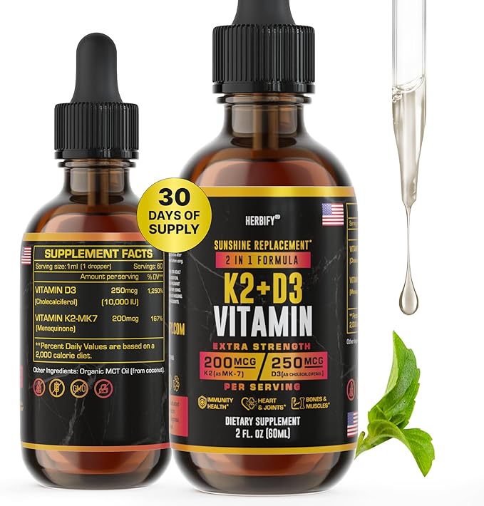 - Vitamin K2 supplement and liquid D3 drops also promote a mood boost and create powerful natural energy in your body all day. Liquid vitamin D3 with K2 also called energy vitamins – organic brain fog supplements for women and men energy and metabolism stimulators.