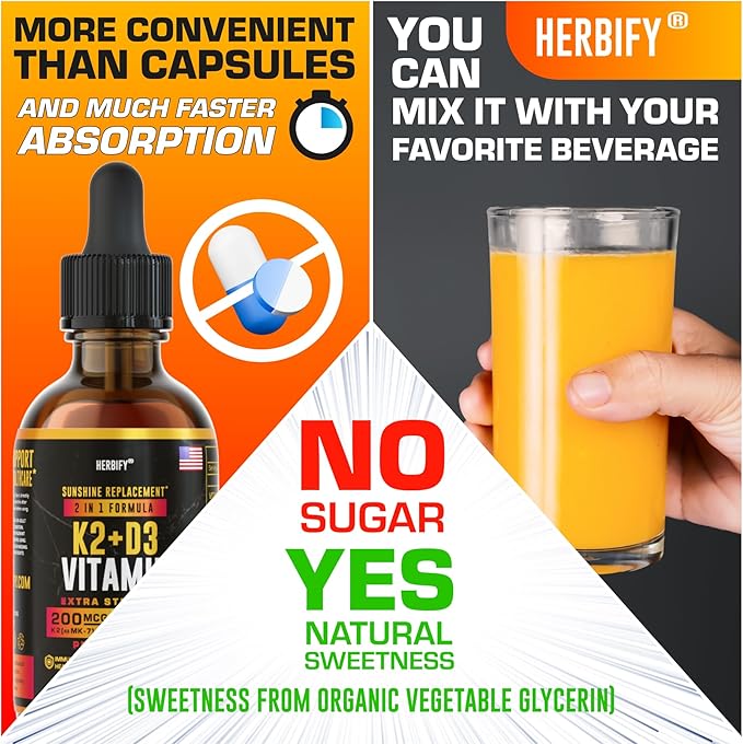 - Herbify always provides a warranty for a full refund in case, if you are not satisfied with our liquid sunshine products - vitamin D3 K2 liquid organic supplement. Your health is our main priority!